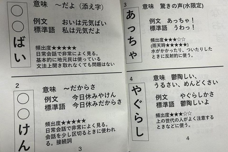 今年度は頻出の方言をまとめた冊子を