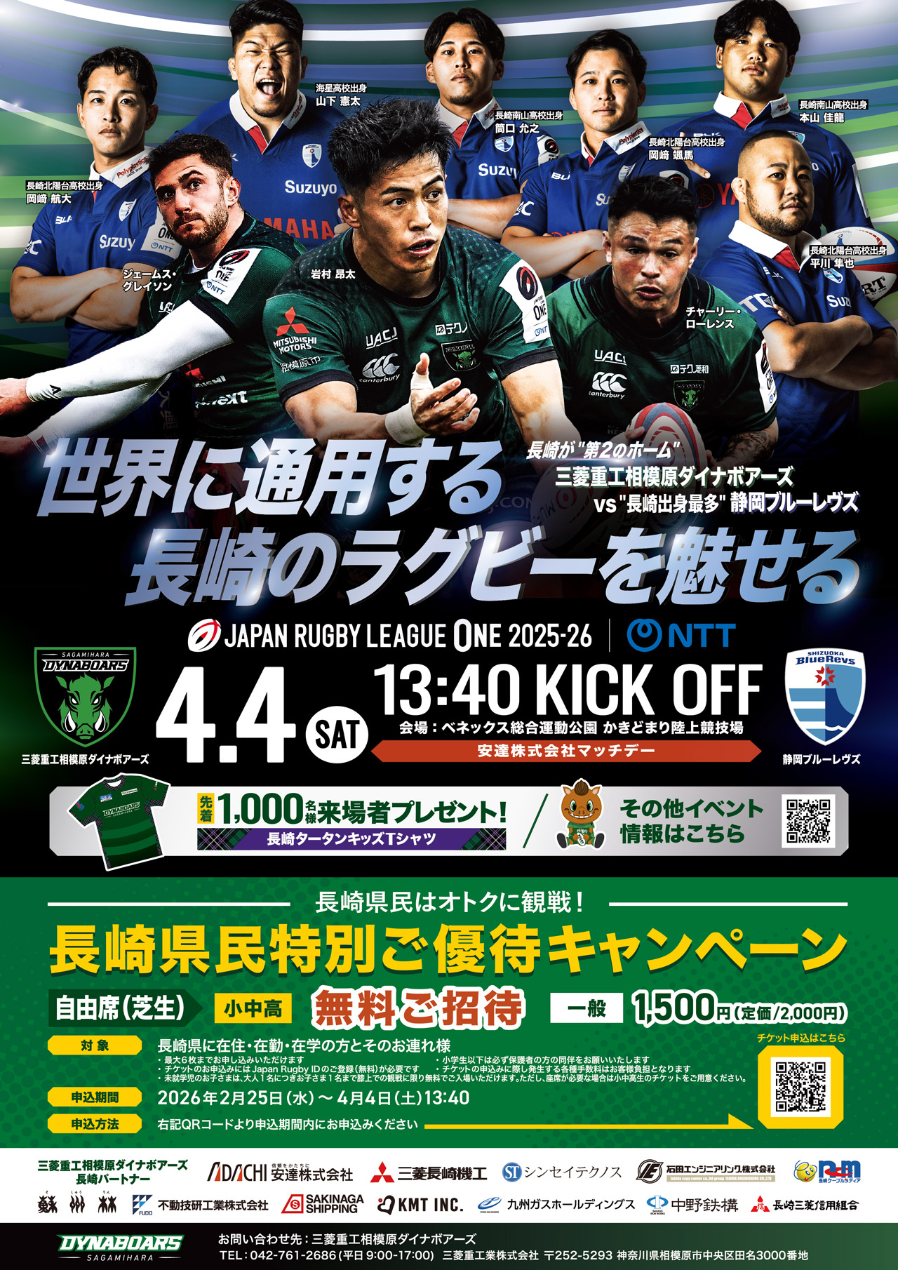 | 14:30 ~ 15:40 | 十八親和銀行プレゼンツ 長崎スコットランド カップ(争奪戦) | 観戦無料 |