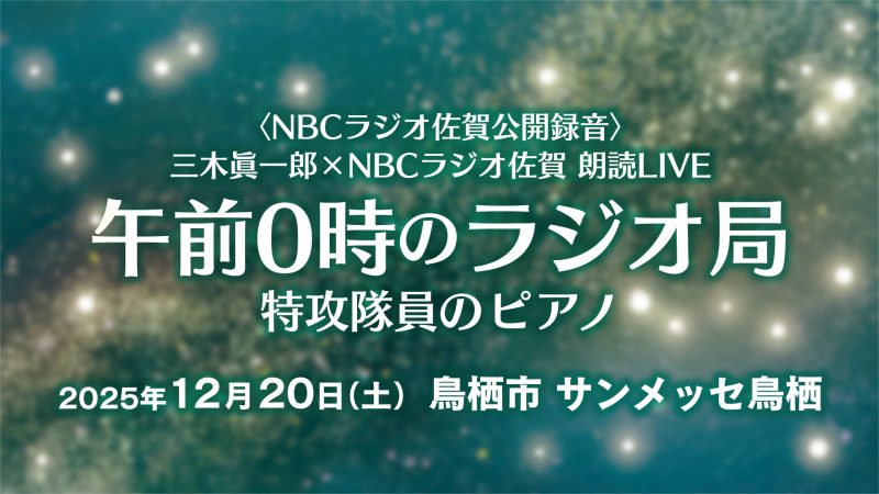 新着 12月30日(火)21:00~くいしんぼう長崎 2025/12/19バルーナーズラジオ 第24回 エミリー先生のマネーのラ・ラ・ラ♪(2025年12月17日放送) 2025/12/12バルーナーズラジオ もっと見る キャンペーン・プレゼント 佐賀出発分「平戸サムソンホテルバスツアー」参加者大募集! NBCラジオ マンスリープレゼント 2025年12月 JA共済×NBCラジオ 交通安全キャンペーン!! 2025/1/3 德丸英器さんとの回 ★お正⽉ということでプレゼントもありますよ!★ もっと見る SNS NBC長崎放送 MUSIC WOLF MUSIC WOLF NBCラジオ RADIO KING. SNS一覧