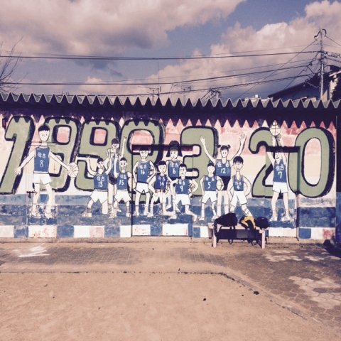 みんなで運動場にある倉庫に描いたんです。